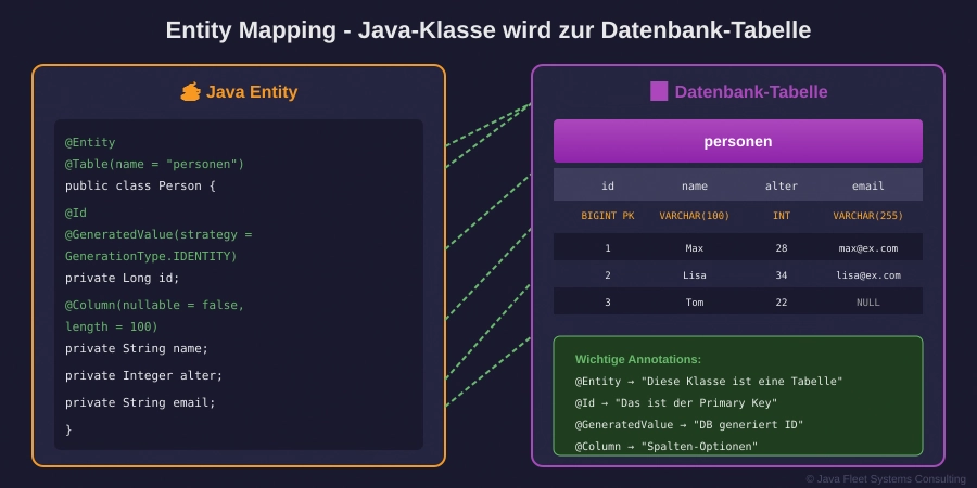 Was ist JPA? Java Persistence API – der Standard für Object-Relational Mapping (ORM).