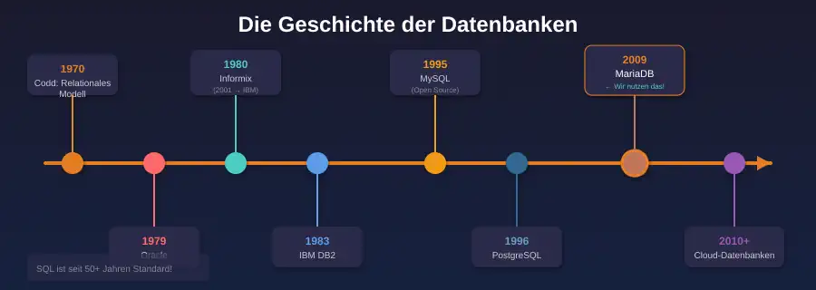 Wir werden mit MariaDB arbeiten. Aber keine Sorge – die Grundlagen, die du lernst (SQL), funktionieren fast überall gleich.