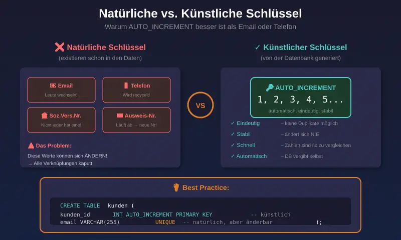 - ✅ Was ein Primärschlüssel ist (der „Ausweis“ jeder Zeile)